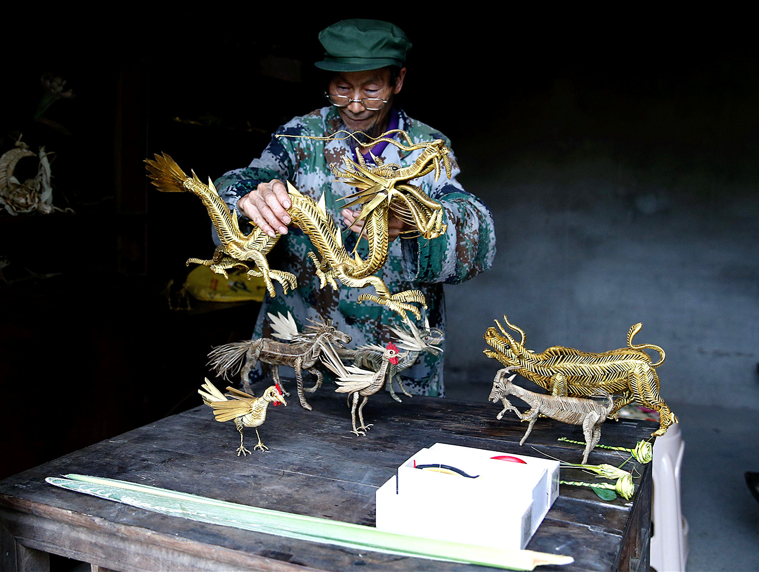 “小朋友们,请把棕叶拿在手上,先拉、再叠、再穿、再剪……这样就编织成一只蚂蚱了。”每周星期四,一位银须飘飘的老人按时到石柱县洗新小学,为孩子们传授棕编技艺。