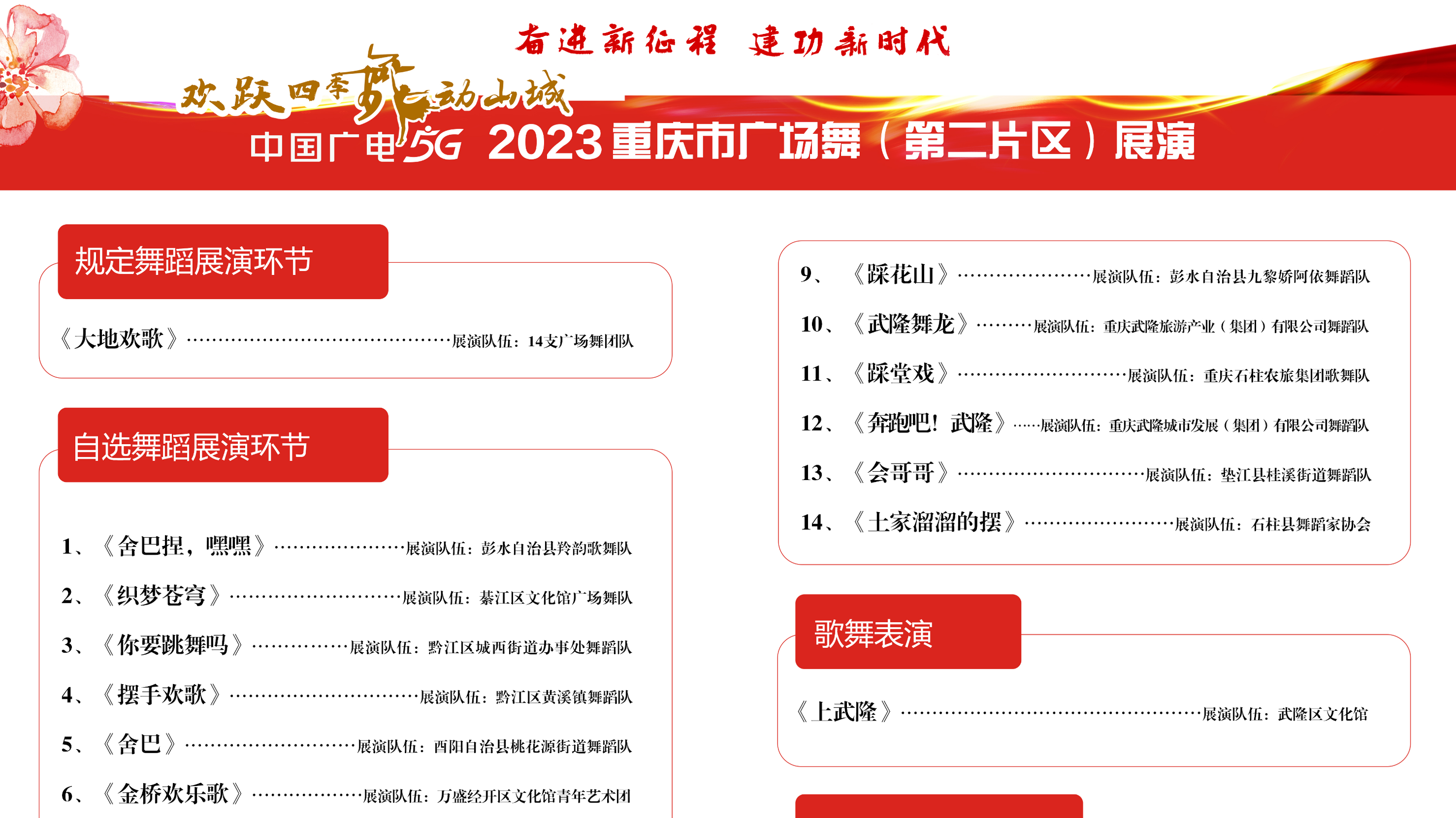 奋进新征程 建功新时代 2023“欢跃四季·舞动山城”重庆市广场舞展演 将于11月6日在武隆精彩开舞
