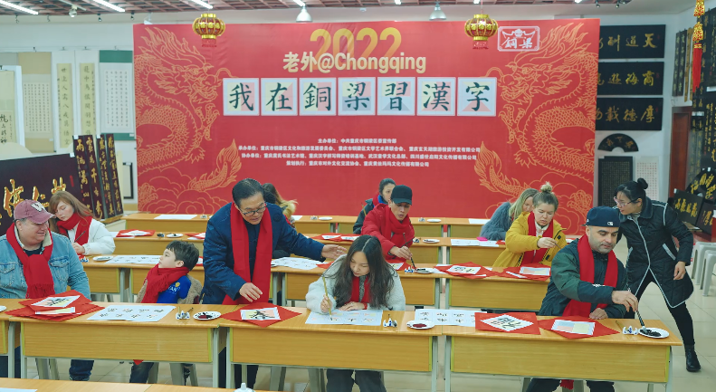 2月14日,在元宵佳节即将到来之际,来自美国、俄罗斯、土耳其等国家和地区的10余名外国友人,在铜梁参加以“2022老外@chongqing·我在铜梁习汉字”为主题的文化活动。活动中,他们用毛笔学写汉字,兴致盎然地体验神奇的“回米格”和汉字拼写技术,感受中国汉字文化艺术的独特魅力。