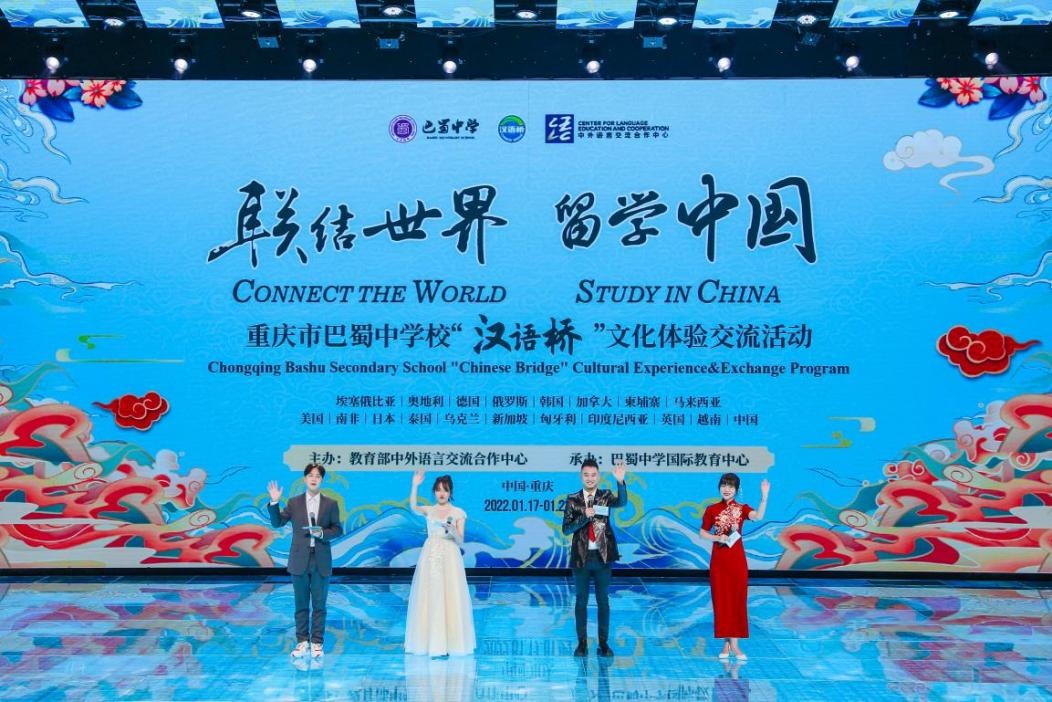 1月17日,由教育部中外语言交流合作中心主办、重庆市巴蜀中学校承办的“汉语桥”文化交流体验活动在巴蜀中学拉开帷幕,未来一周,来自世界各地的外国学子将参与线上人文·语言·文化体验冬令营,通过巴蜀中学教师的线上授课,了解中华文化,领略巴渝魅力。