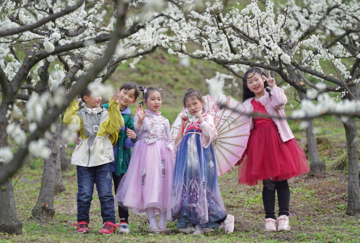 将漫山李花囊入相机 这群孩子将梁平李花“送”出千里