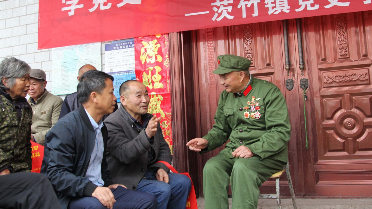 4月12日,在渝北区茨竹镇大面坡村4社的农家小院内,一等功臣唐盛平为村(社区)党员、预备党员,讲述了革命烈士为了国家和人民利益抛头颅、洒热血的感人故事。