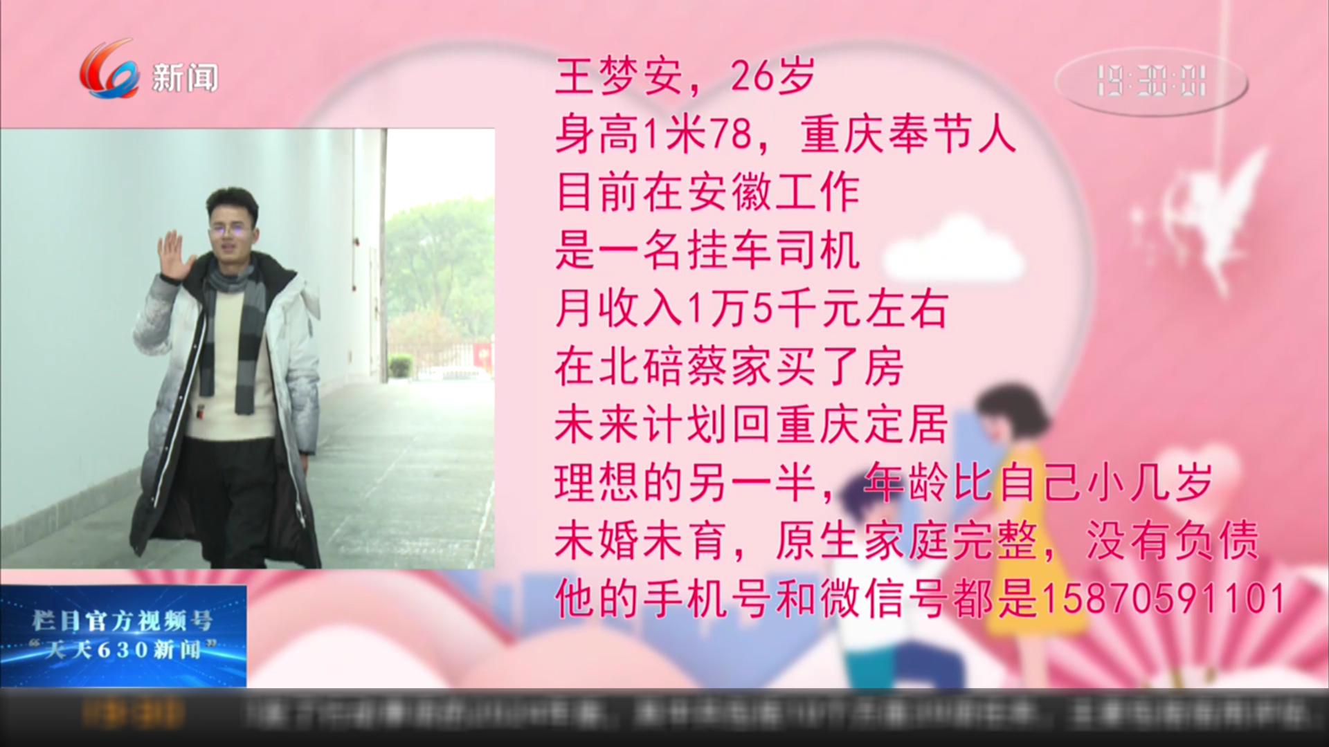 天天630,爱情来敲门。记者当红娘,先生女士都漂亮。今天登场的男嘉宾,是26岁的挂车司机王梦安。去年初,小王就曾经上过我们节目,当时,他正在忙新家装修的事情。一年时间过去了,小王的相亲进展如何呢?
