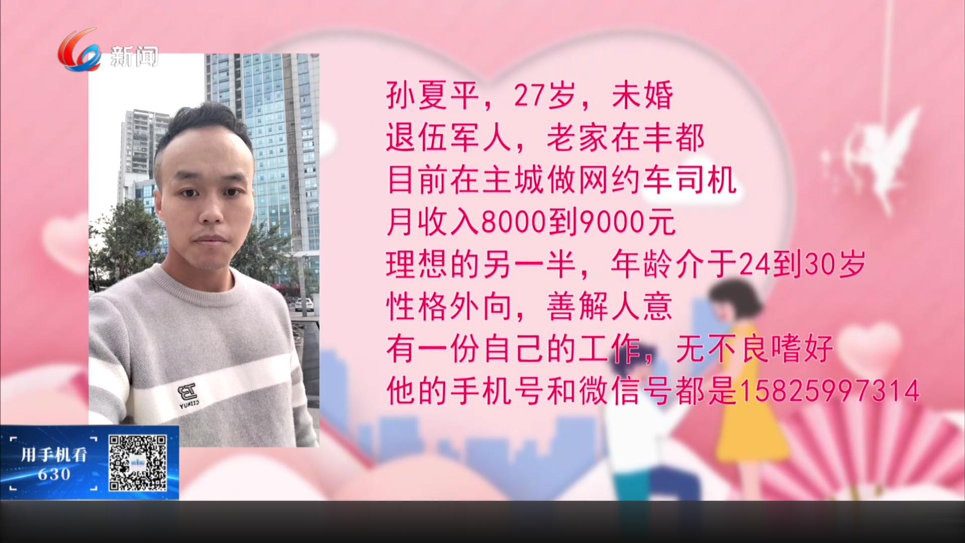 天天630,爱情来敲门。记者当红娘,先生女士都漂亮。荣昌小伙方天龙前段时间来征婚,最近他告诉我们,他脱单了。不过他的女朋友不是通过节目认识的,而是在我们采访他之后,节目播出之前这个时间段,在老家认识的。但方天龙觉得很多朋友通过爱情来敲门关注到他,他还是想把这个好消息跟大家分享一下。