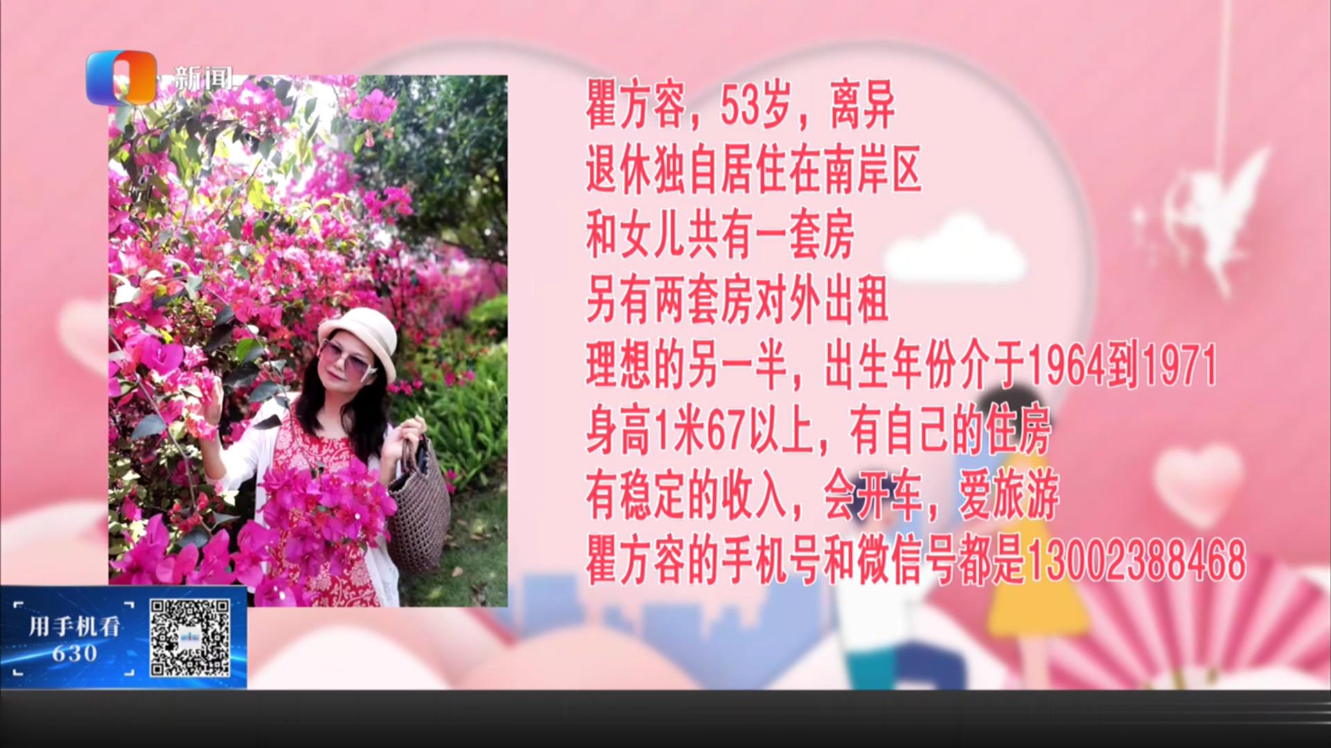 新闻服务市民,630甘当月老。一起走进今天的交友婚恋版块“630爱情来敲门”。5月26号,家住南岸的瞿女士上了我们的节目,希望找到一位爱好旅游的男士,共度退休生活。两个月过去了,瞿女士的相亲进展如何呢?记者对她进行了回访。