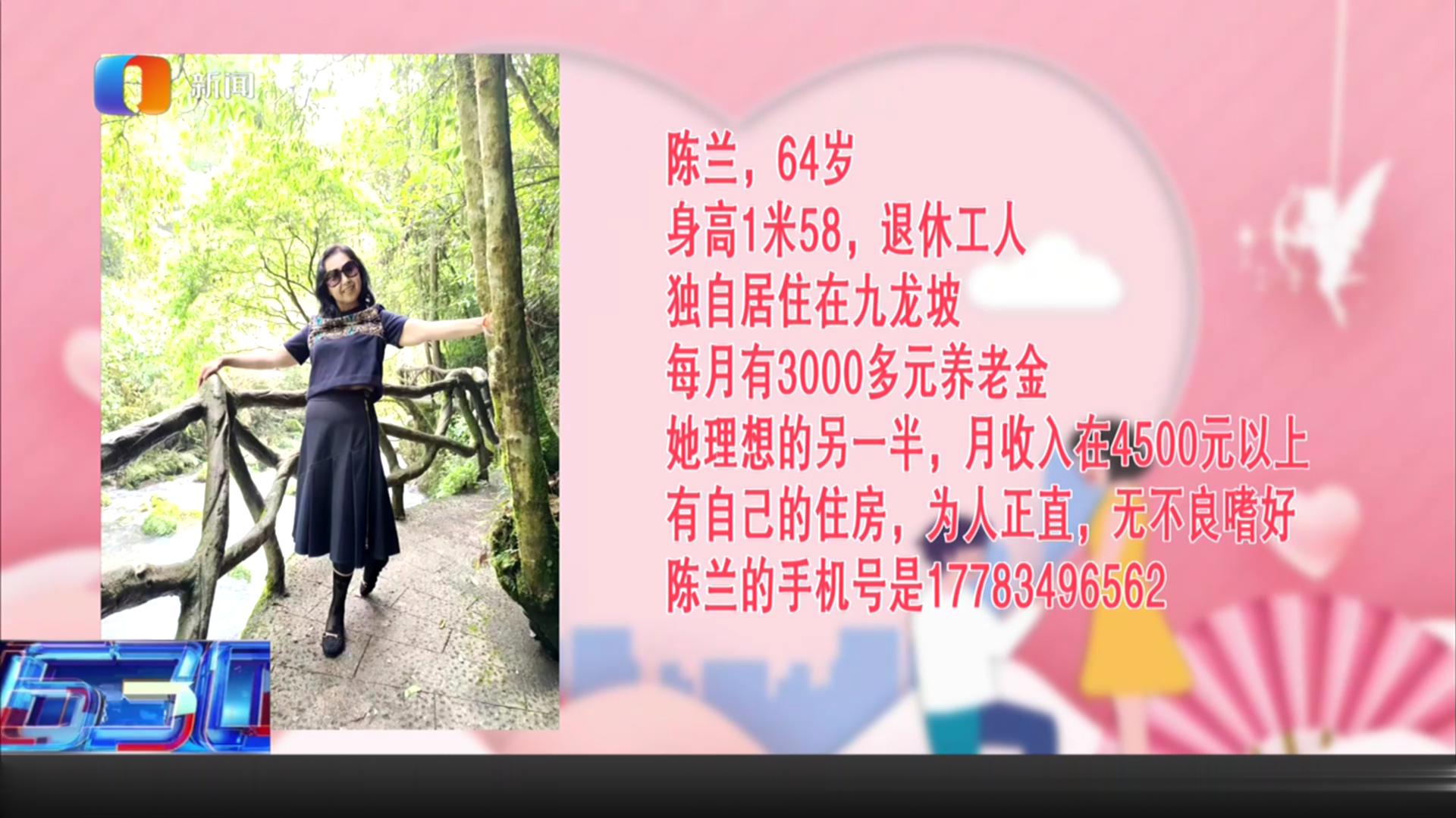 新闻服务市民,630甘当月老。一起来看交友婚恋版块“630爱情来敲门”。前段时间,我们报道了大渡口区的赵女士,节目播出后,她很快就牵手成功,与意中人坠入爱河,仅用了10天时间就领证结婚。如今,幸福的赵女士又把她的两位单身闺蜜介绍给我们,希望闺蜜也能找到属于自己的幸福。7月6日,我们重点介绍其中的一位:邹光容。
