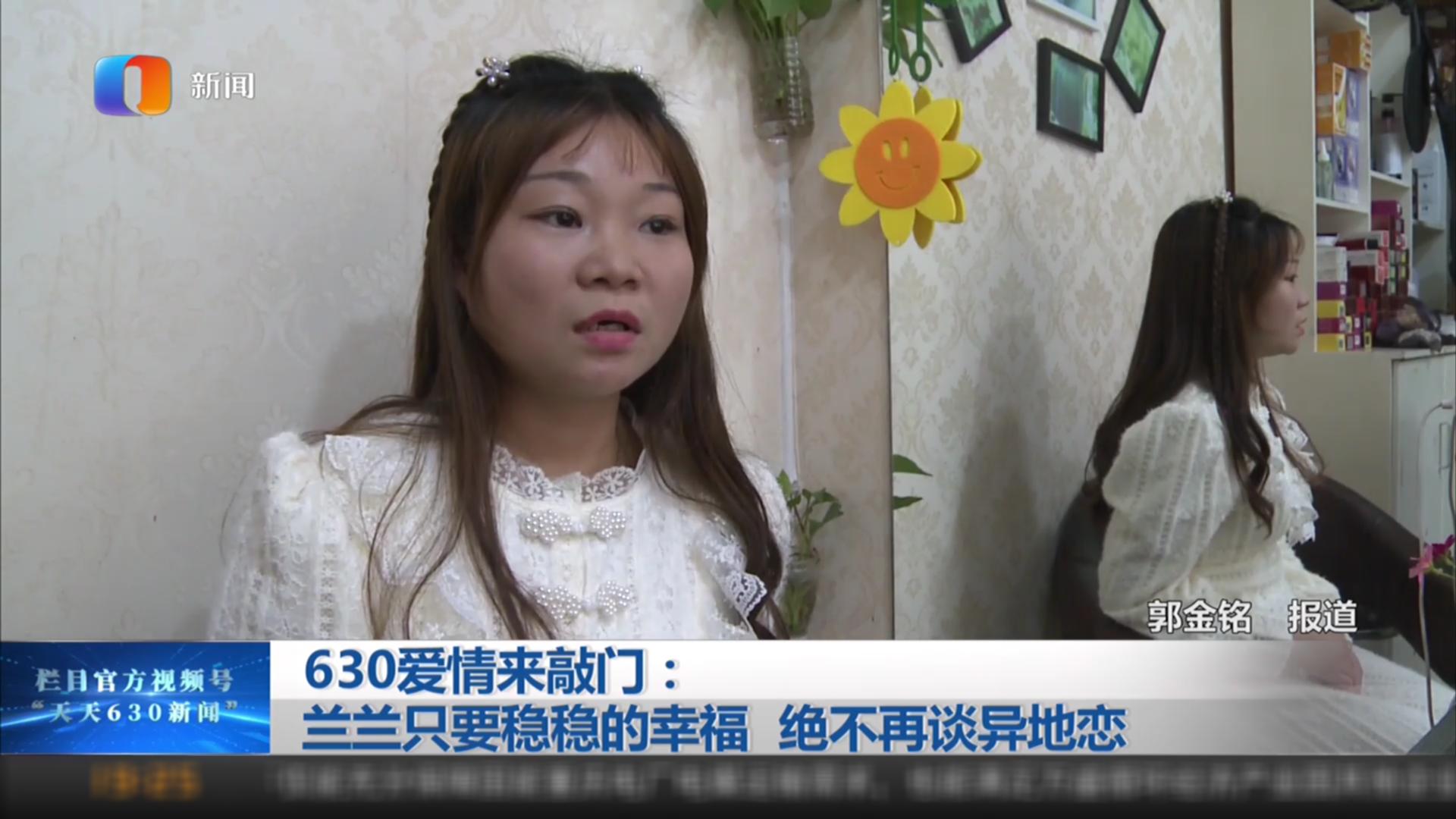 新闻服务市民,630甘当月老。一起来看交友婚恋版块“630爱情来敲门”。今天(5月29日),走到镜头前征婚的,是一位30岁的女子:曾龙兰,她的择偶标准中,最重要的一条就是:绝对不谈“异地恋”。她想要稳稳的幸福,想过触手可及的日子。