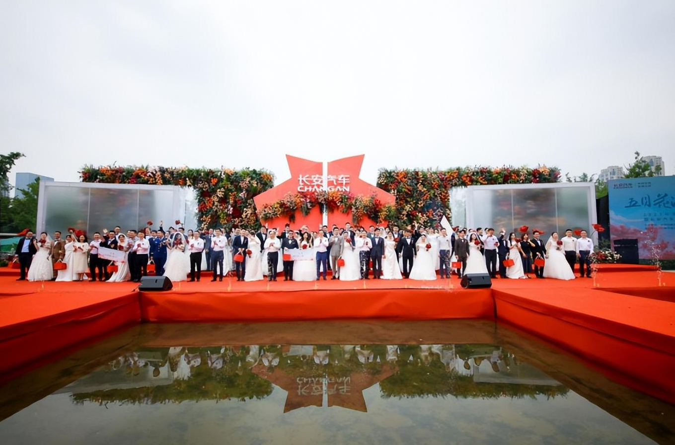 5月20日,2023年重庆市青年集体婚礼暨长安汽车第十一届青年集体婚礼在中央公园举行。在团市委、市国资委、长安汽车领导,同事亲友以及现场嘉宾共同祝福与见证下,60对新人心手相牵步入婚姻殿堂。