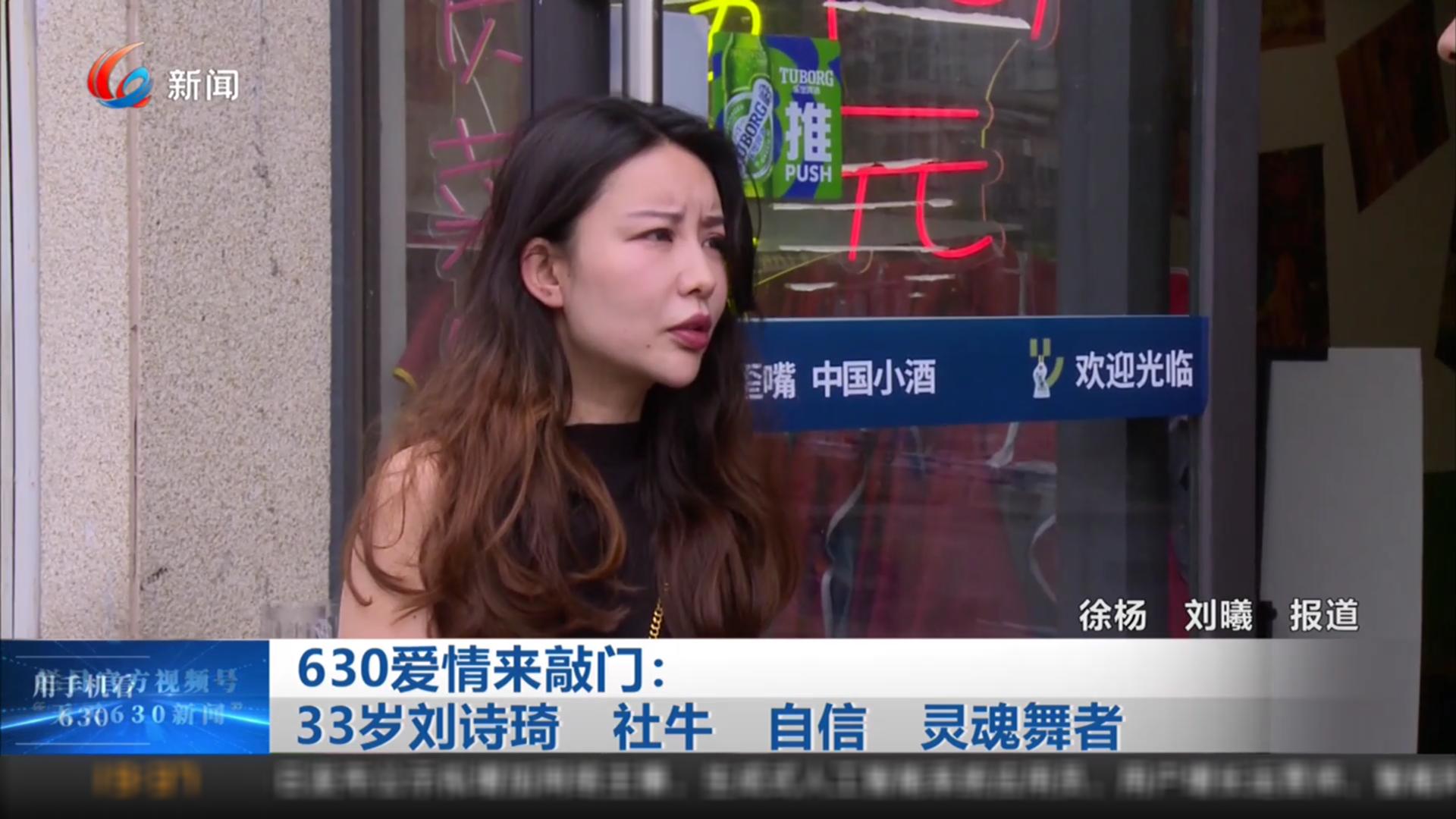 天天630,爱情来敲门;记者当红娘,先生女士都漂亮。今天的征婚嘉宾是33岁的刘诗琦,如果在她身上提取几个关键词,那应该是,社牛、自信、灵魂舞者。一起来认识一下她吧。
