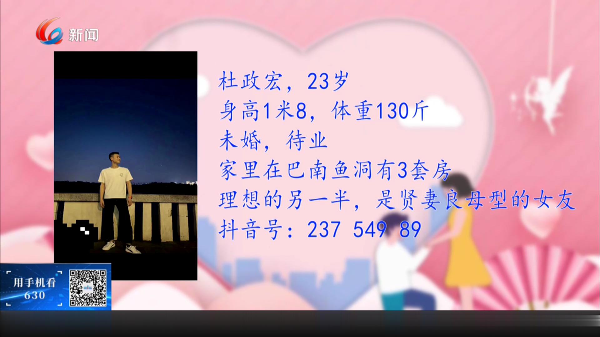 今天的登场嘉宾,是家住巴南鱼洞的00后小伙杜政宏。小杜身材高瘦,出社会比较早,工作经历丰富。他想通过“630爱情来敲门”,找到一个贤妻良母型的女友。