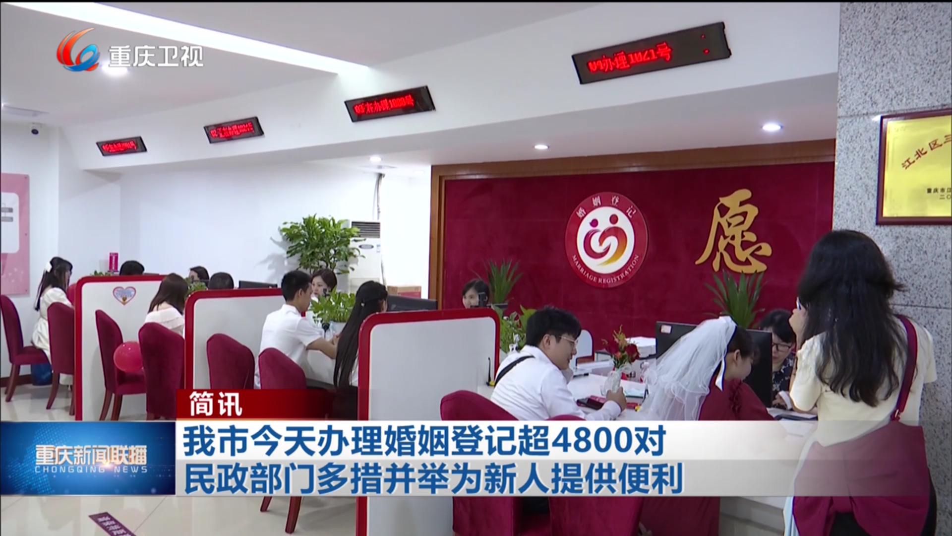 简讯:我市今天办理婚姻登记超4800对 民政部门多措并举为新人提供便利