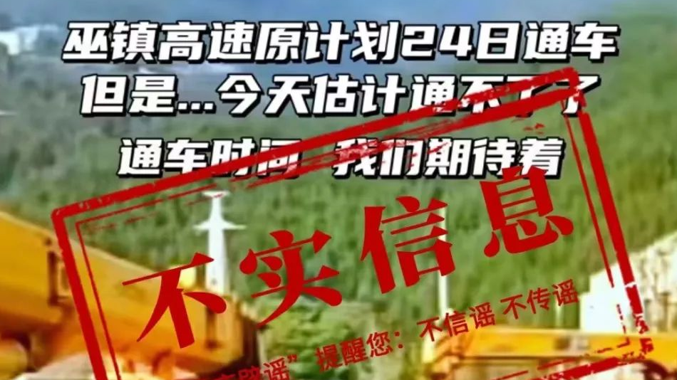 【重庆辟谣】巫镇高速通车了?官方回应:不实!