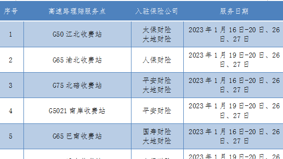 春运期间,为提高道路交通事故快处快赔效率,温暖大家的回家路,重庆市公安局交巡警总队会同重庆银保监局、市保险行业协会和多家保险公司,深化警保联勤联动机制,在城区已有“警保联动”便民服务站的基础上,春节期间将在16个高速公路重点收费站设立“警保联动”便民服务站。