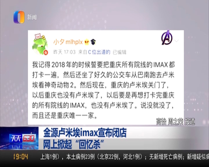 金源卢米埃imax宣布闭店 网上掀起“回忆杀”