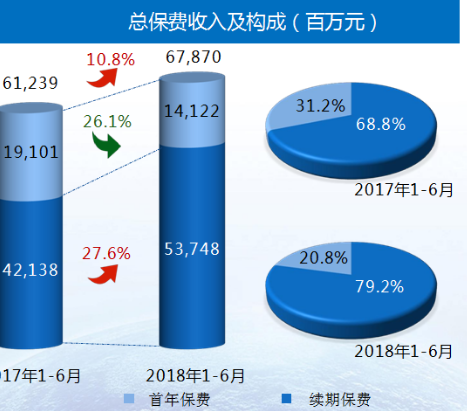 8月28日,新华人寿保险股份有限公司(以下简称“新华保险”或“公司”)公布上半年公司经营业绩。数据显示,新华保险2018年上半年共实现保费收入678.70亿元(人民币,下同),同比增长10.8%;归属于母公司股东的净利润57.99亿元,同比增长79.1%;内含价值1,656.01亿元,较上年末增长7.9%;剩余边际1,841.68亿元,较上年末增长8.1%。