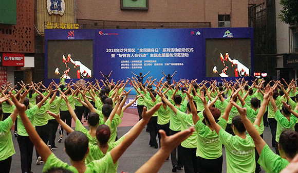 今日,2018年沙坪坝区“全民健身日”系列活动启动仪式暨“好体育人在行动”主题志愿服务示范活动举行。沙坪坝区体育局供图现场还设置包括艺术体操摄影展、太极拳、乒乓球、棋类、体质测试与健康咨询、科学健身宣传等宣传展示体验区。