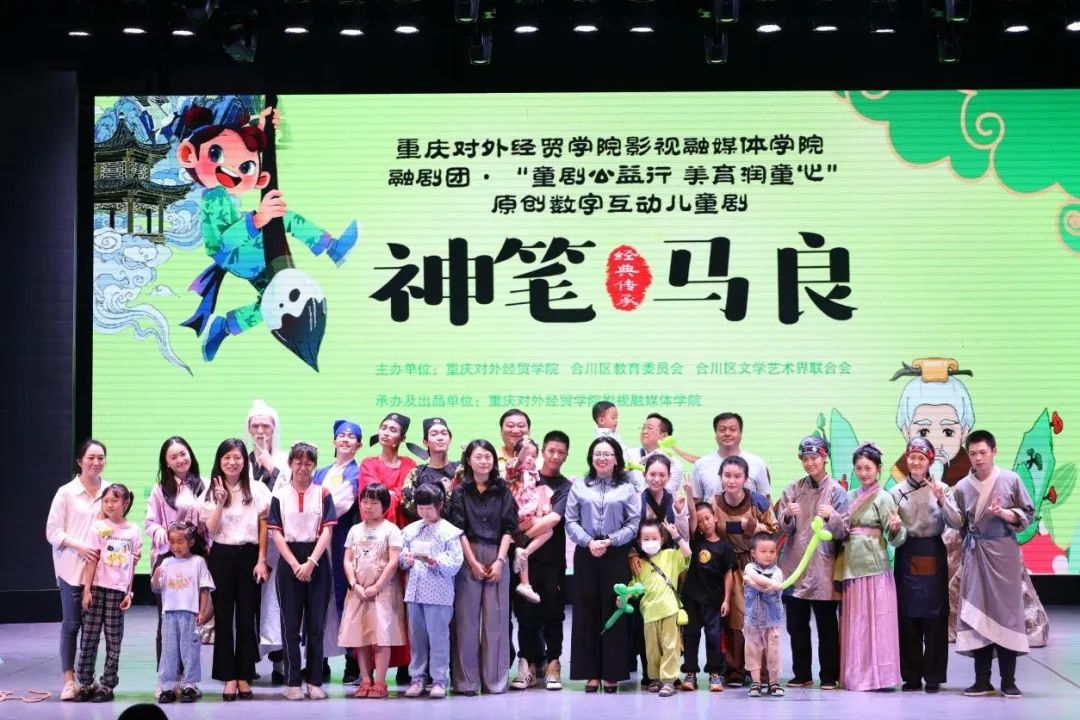 近日,重庆对外经贸学院在合川A校区小剧场举行了“童剧公益行,美育润童心”原创数字互动儿童剧《神笔马良》展演活动。活动由重庆对外经贸学院、合川区教育委员会、合川区文学艺术界联合会主办,重庆对外经贸学院影视融媒体学院承办及出品。来自合川区委机关、新华小学、濮湖小学、新华幼儿园等单位的400名观众观看了本次演出。