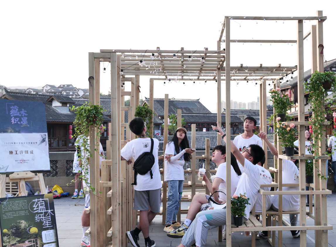 激发学生的学习热情和创造性,开发设计潜能。4月15日,第十届“重庆大学建造季”在沙坪坝区磁器口古镇举行,学生们通过8小时完成建筑物模型搭建,为游客带来了一场技术与艺术相结合的建造盛宴。