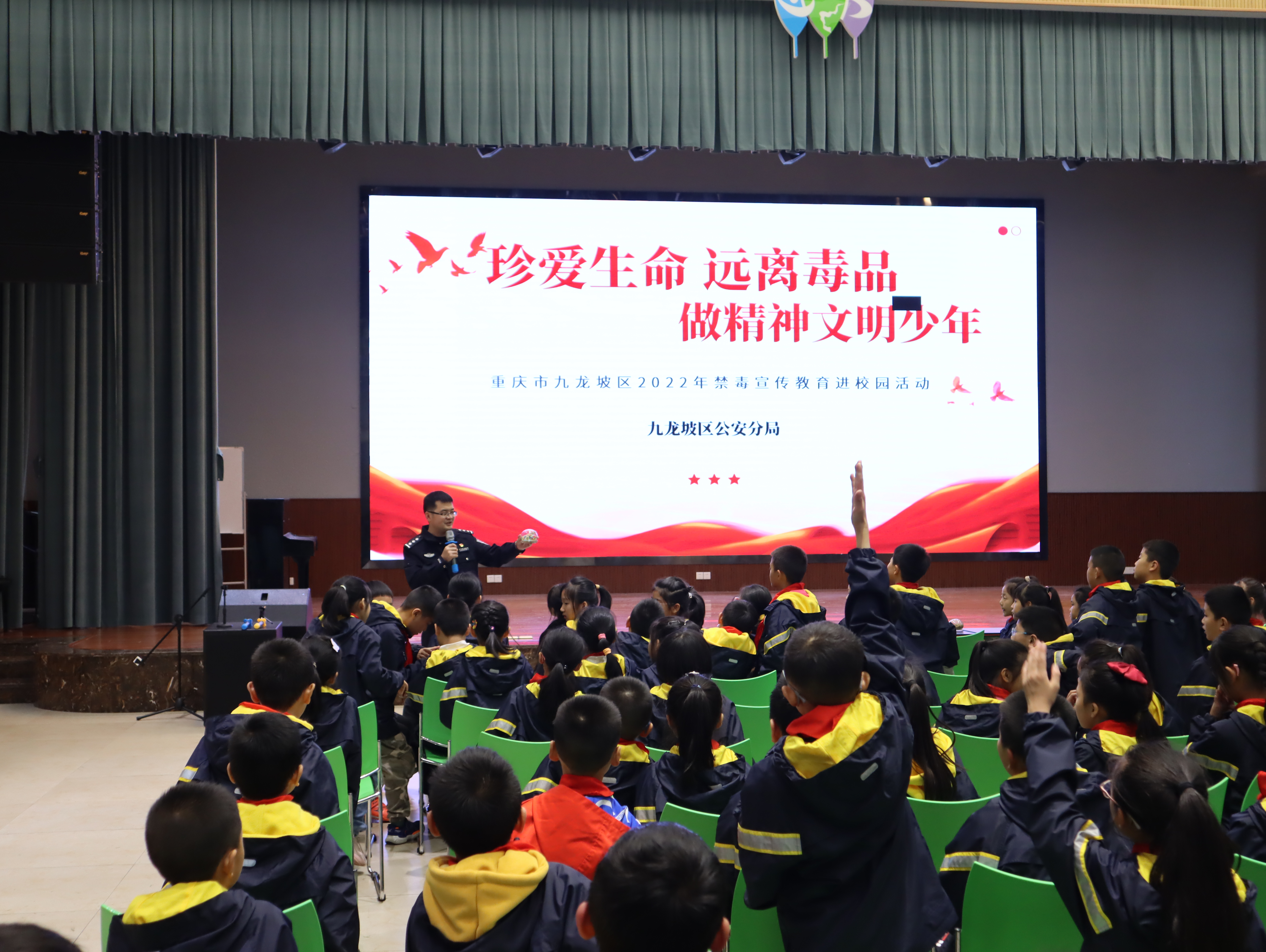 为进一步增强青少年识毒防毒拒毒的意识和能力,持续推动青少年毒品预防宣传教育工作走深走实,近日,九龙坡区公安分局禁毒支队民警在辖区组织开展“珍爱生命,远离毒品,争做精神文明少年”禁毒宣传教育进校园活动。