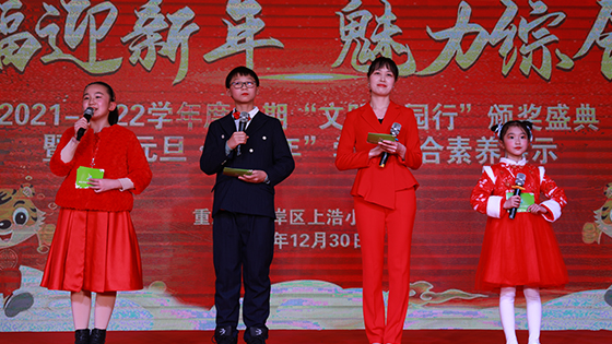 12月30日下午,重庆市南岸区上浩小学校在校内多媒体教室举行了“虎福迎新年·魅力综合秀”——2021—2022学年度上期“文明校园行”颁奖盛典暨“庆元旦·迎新年”学生综合素养展示活动。