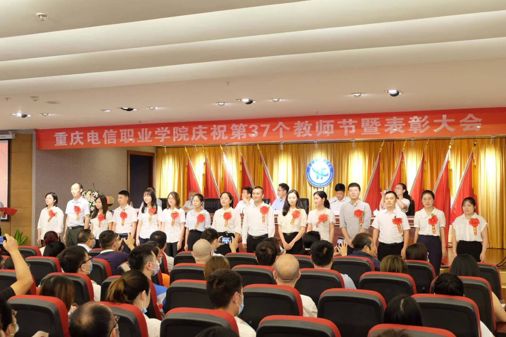 9月10日下午,重庆电信职业学院在学术报告厅举行了庆祝第37个教师节暨表彰大会。重庆电信职业学院全体在校领导、全体教职员工及部分学生代表参加活动。
