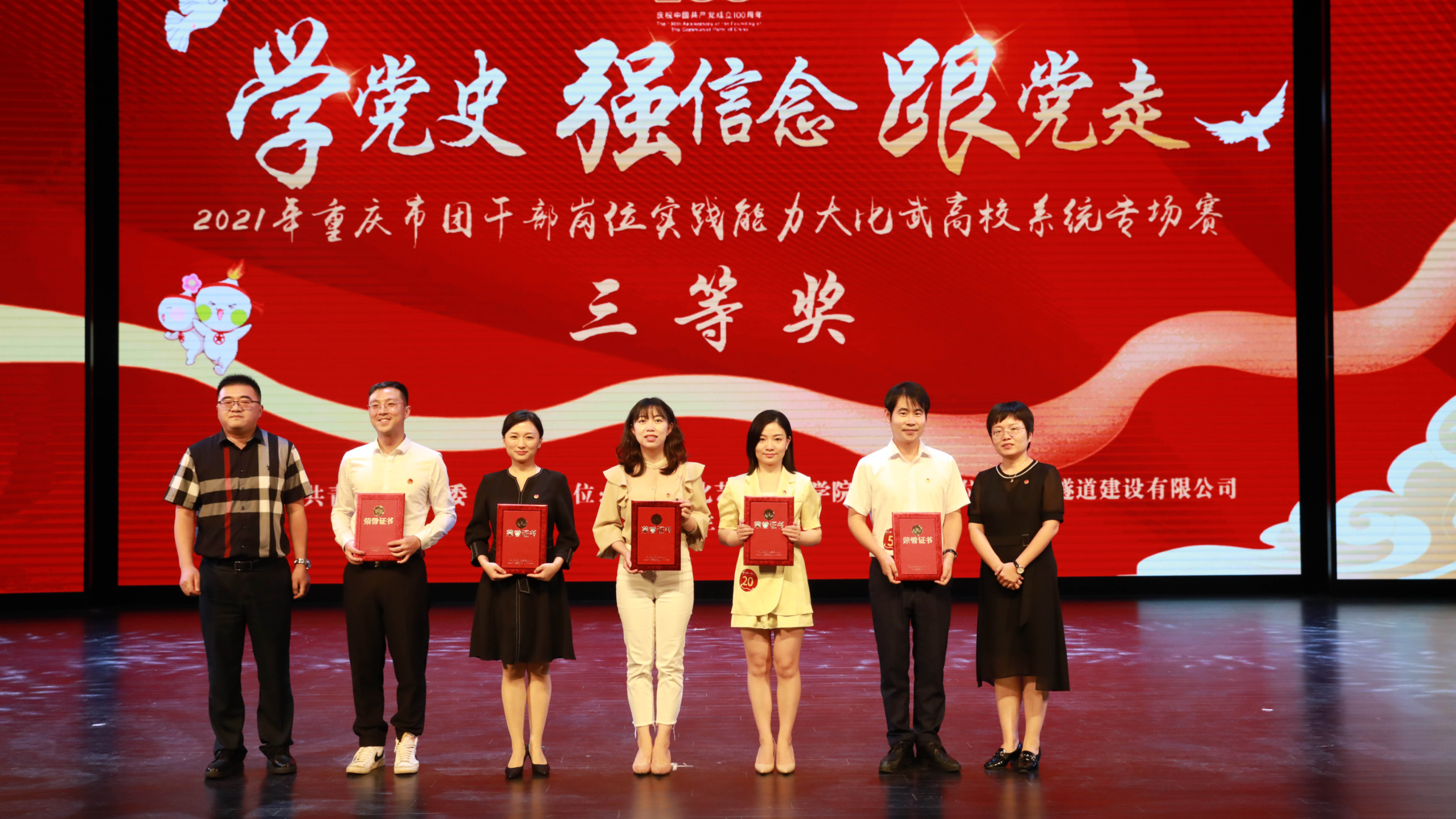 2021年重庆市团干部岗位实践能力大比武高校系统专场赛圆满举办 9月28日下午,由共青团重庆市委主办、重庆文化艺术职业学院承办的“学党史 强信念 跟党走”2021年重庆市团干部岗位实践能力大比武高校系统专场赛在重庆文化艺术职业学院的中剧场举行。