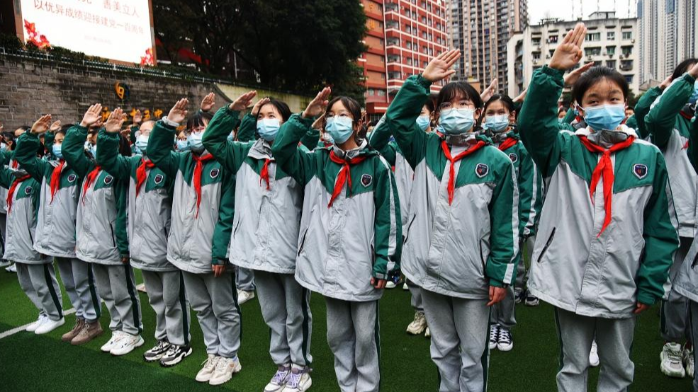 昨天(3月1日),全国中小学生迎来新学期开学第一天。今年是中国共产党成立100周年,在重庆市大渡口区,重庆第95中学、重庆市大渡口区实验小学、重庆市大渡口区育才小学等学校纷纷举行了以迎接建党100周年为主题的开学典礼。