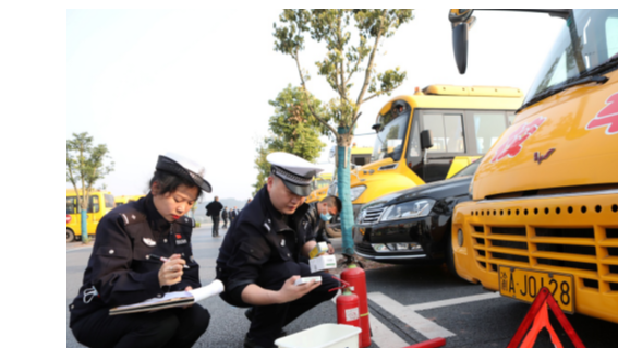 新学期开学在即,2月24日,重庆市永川区公安局交巡警支队车管所组织全区校车集中开展安全隐患大排查。安检现场,民警对照《校车安全管理督检表》12项检验内容,认真检查每一辆校车的校车信息资料、校车司机驾驶资格、校车安全性能、灯光系统、随车配备的安全应急器材设备等项目,及时消除校车安全隐患,坚决杜绝校车“带病”上路。