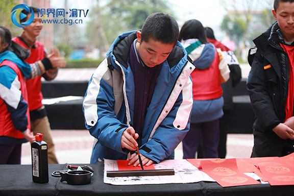 重庆文德中学校:学子挥毫写春联 墨香公益送祝福