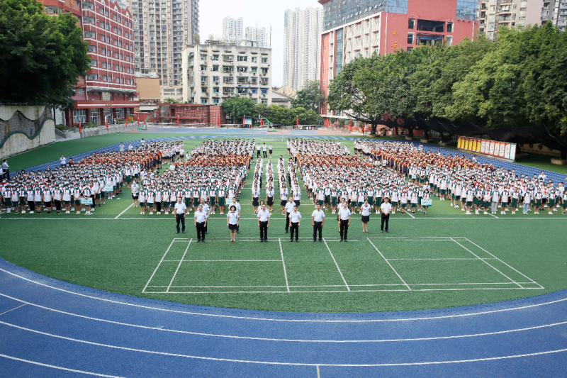 9月1日上午9时,重庆市第二外国语学校全体师生齐聚学校运动场,举行以“家是二外,国是中国”为主题的2020年秋季开学典礼。