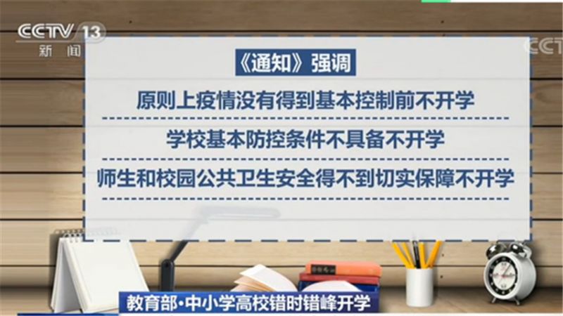 教育部:中小学高校错时错峰开学 疫情没有得到基本控制前不开学