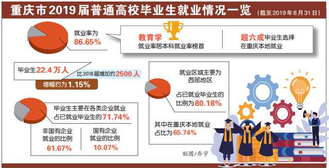 重庆市2019届普通高校毕业生就业报告发布 超六成在渝就业 本科就业率教育学最高