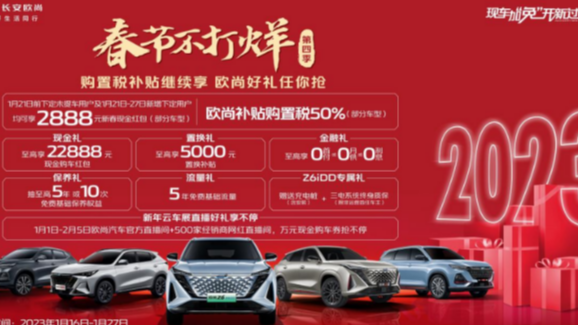近日,欧尚汽车发布第四季“春节不打烊”活动,推出“购置税补贴继续享,欧尚好礼任你抢”的新春福利,并送出新春现金红包。