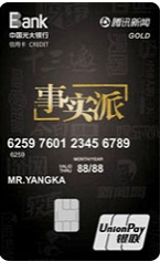如今,频频“跨界”的信用卡为消费者搭建了全方位的消费场景。兼具“事实”精神与“大数据”砝码的新闻媒体又一次遇到了中国光大银行信用卡。近日,中国光大银行信用卡中心再次联手以“事实派”为新闻准则的腾讯新闻,共同推出“光大腾讯新闻联名信用卡”。