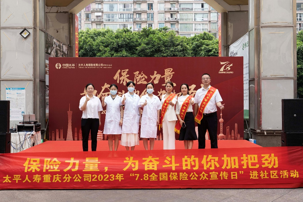 今年是中国第十一个“7.8 全国保险公众宣传日”,本次宣传活动坚持“以人民为中心”的发展思想,聚焦保险业政治性、人民性,力求推动保险业高质量发展再上新台阶。太平人寿重庆分公司聚焦主责主业,多举措开展公众宣传活动,用保险力量为奋斗者加把劲。