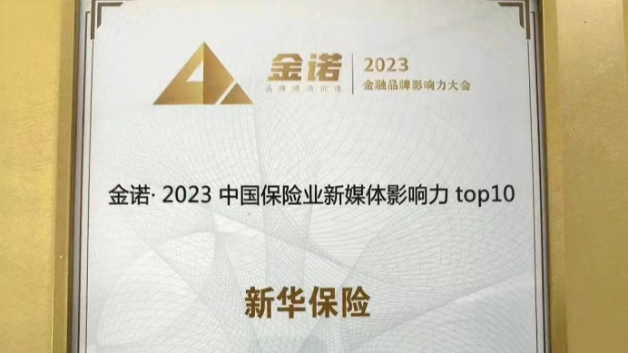 5月9日,中国银行保险报主办的“迈向时代新征程 焕发品牌新动能”的第七届金融品牌影响力大会在厦门举办,会上发布了《2023中国金融品牌影响力指数报告》及2023银行、保险、信托新媒体影响力榜单。新华保险凭借出色的新媒体运营、持续攀升的品牌影响力和社会责任项目分别荣获“金诺·2023中国保险业新媒体影响力top10”和“金诺·中国金融年度优秀社会责任项目”两项大奖。
