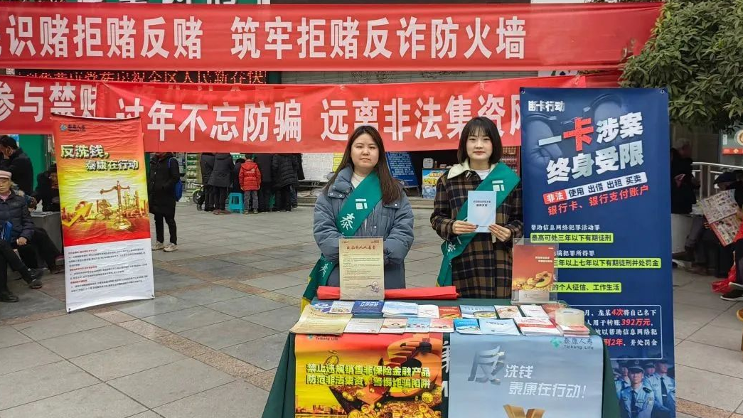 为持续推进防范非法集资、反诈、反洗钱等宣传工作,不断提升社会公众金融素养和风险防范意识,紧跟重庆银保监局要求,2023年1月至2月,泰康人寿重庆分公司及全辖机构积极开展了一系列专题宣教活动。