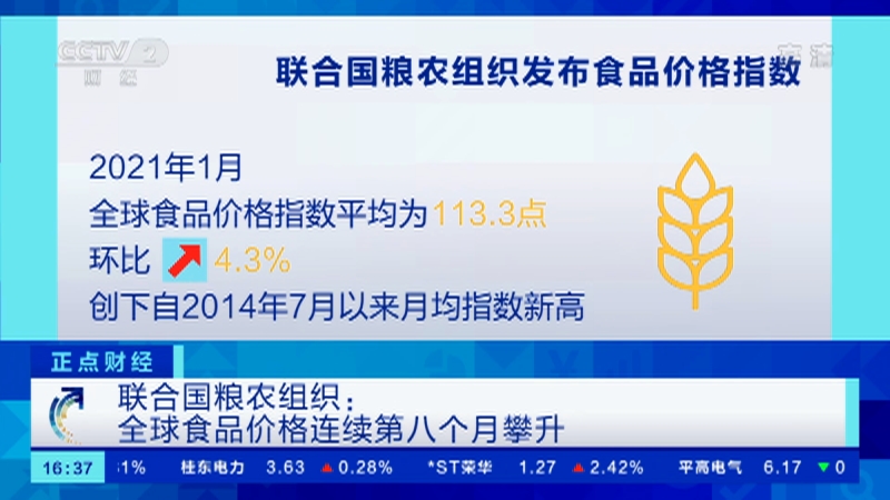 联合国粮农组织:全球食品价格连续第八个月攀升