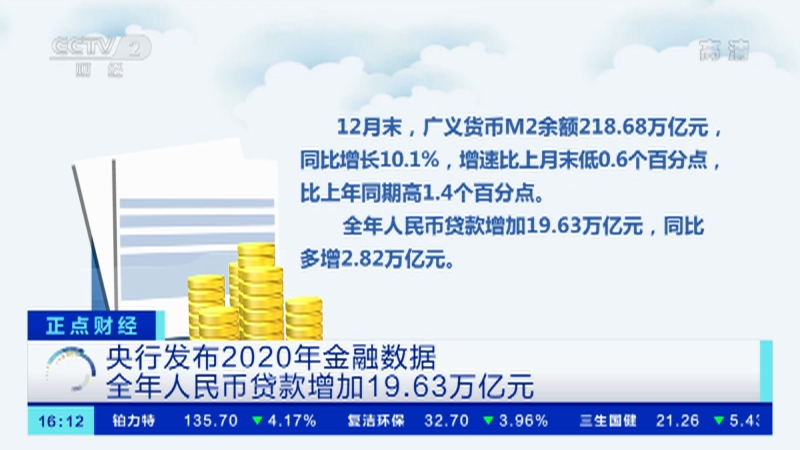 央行发布2020年金融数据 全年人民币贷款增加19.63万亿元