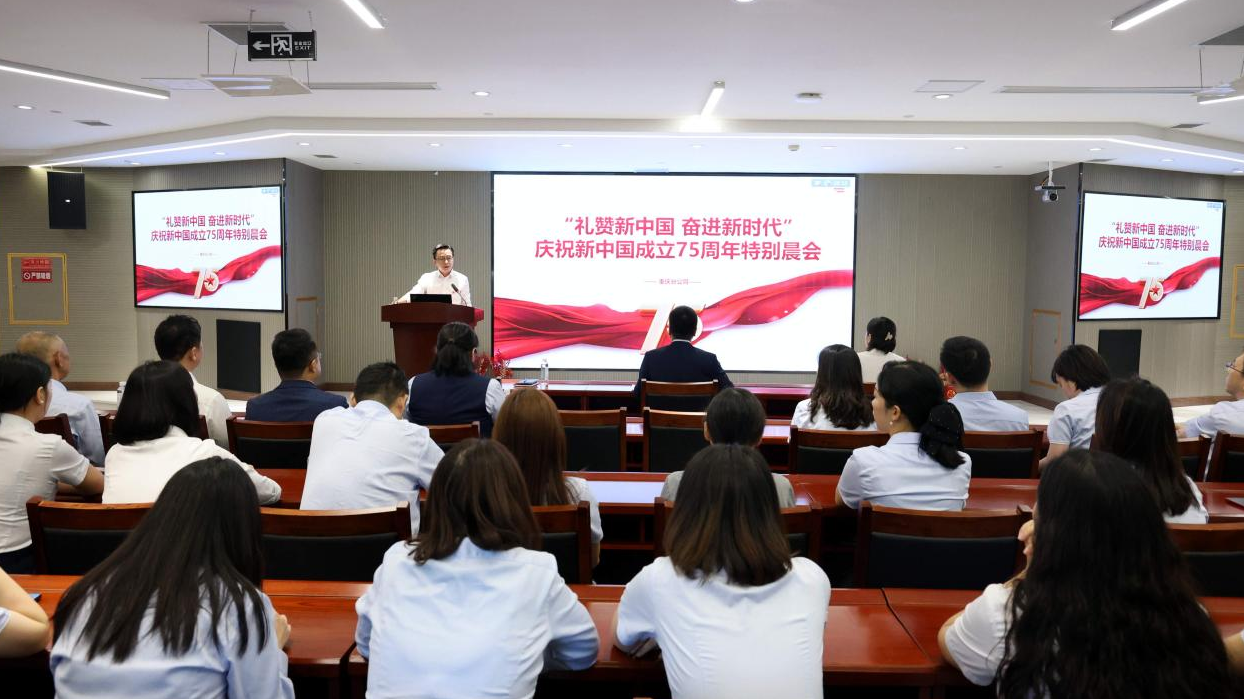 在新中国成立75周年之际,新华保险重庆分公司以特别晨会的形式,组织本部全体党员干部、员工一同向伟大的祖国献上真挚的礼赞。