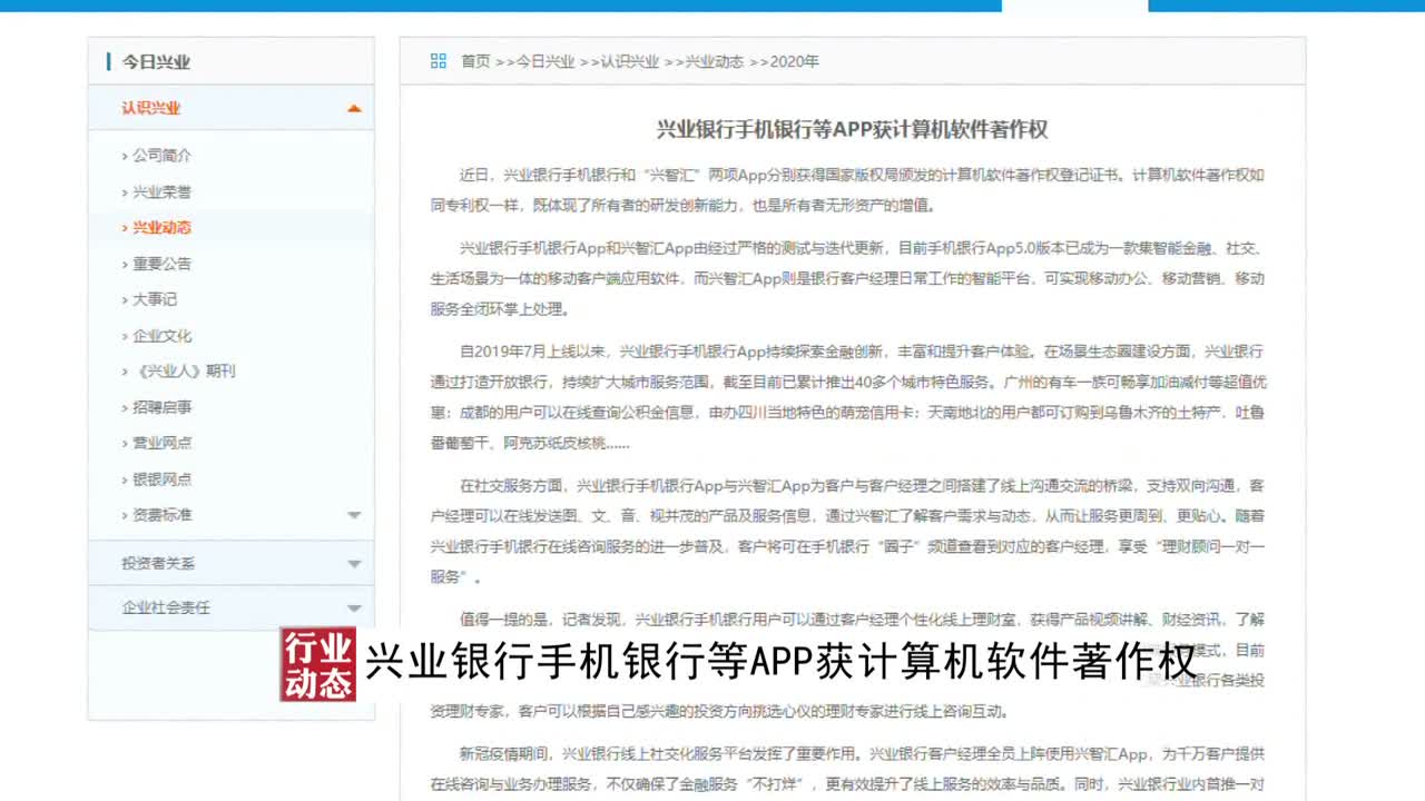 【行业动态】兴业银行手机银行等APP获计算机软件著作权