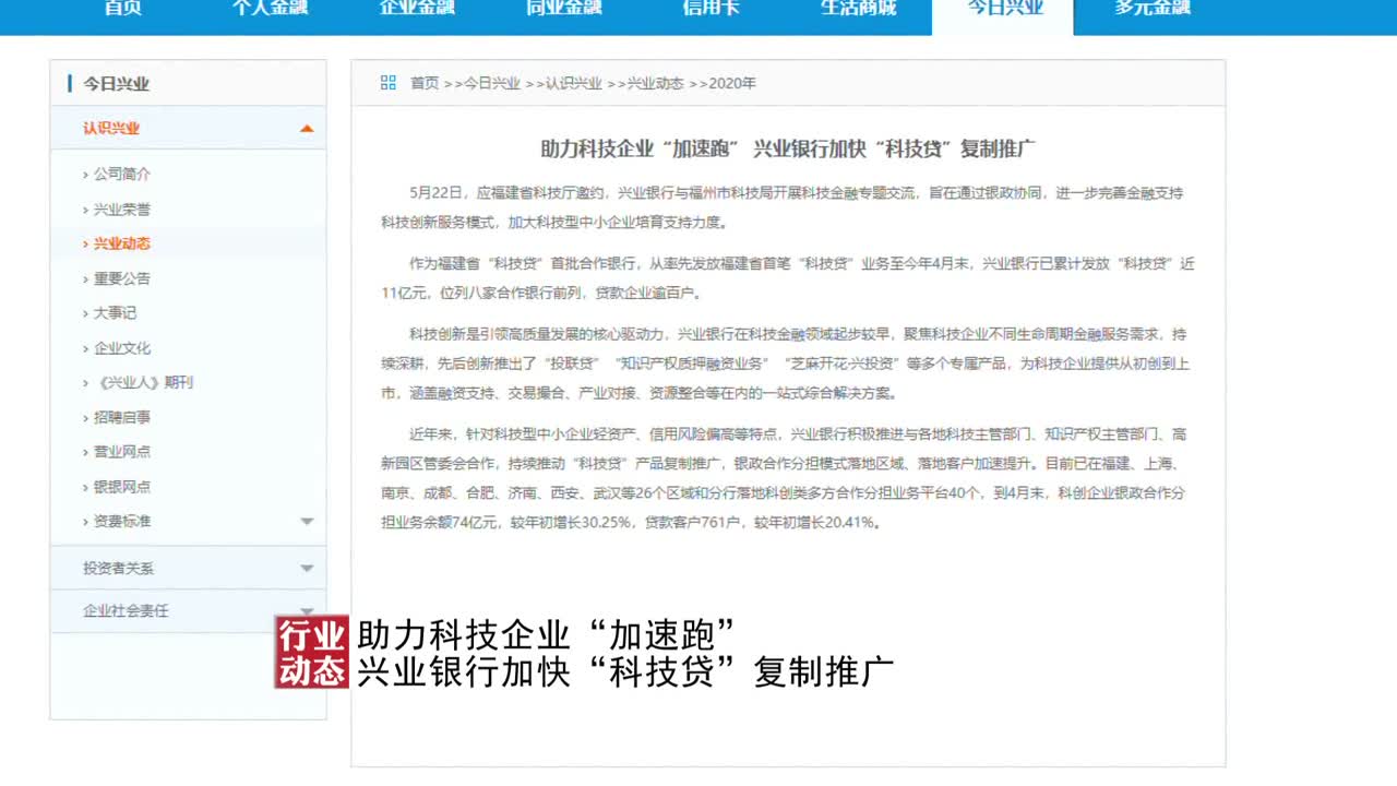 【行业动态】助力科技企业“加速跑” 兴业银行加快“科技贷”复制推广