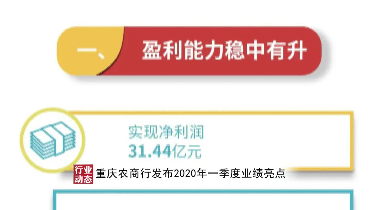 近日,重庆农商行发布了2020年一季度业绩亮点