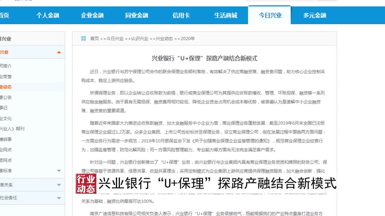 【行业动态】兴业银行“U+保理”探路产融结合新模式