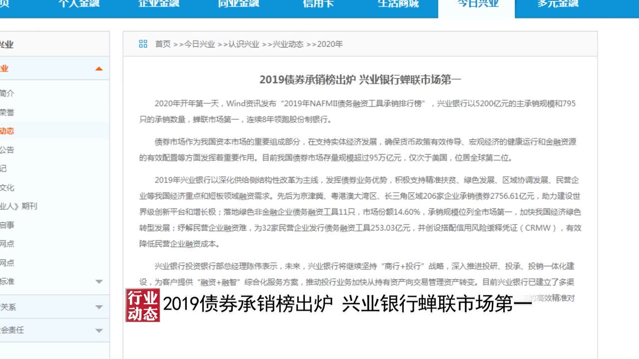 【行业记录】2019债券承销榜出炉 兴业银行蝉联市场第一