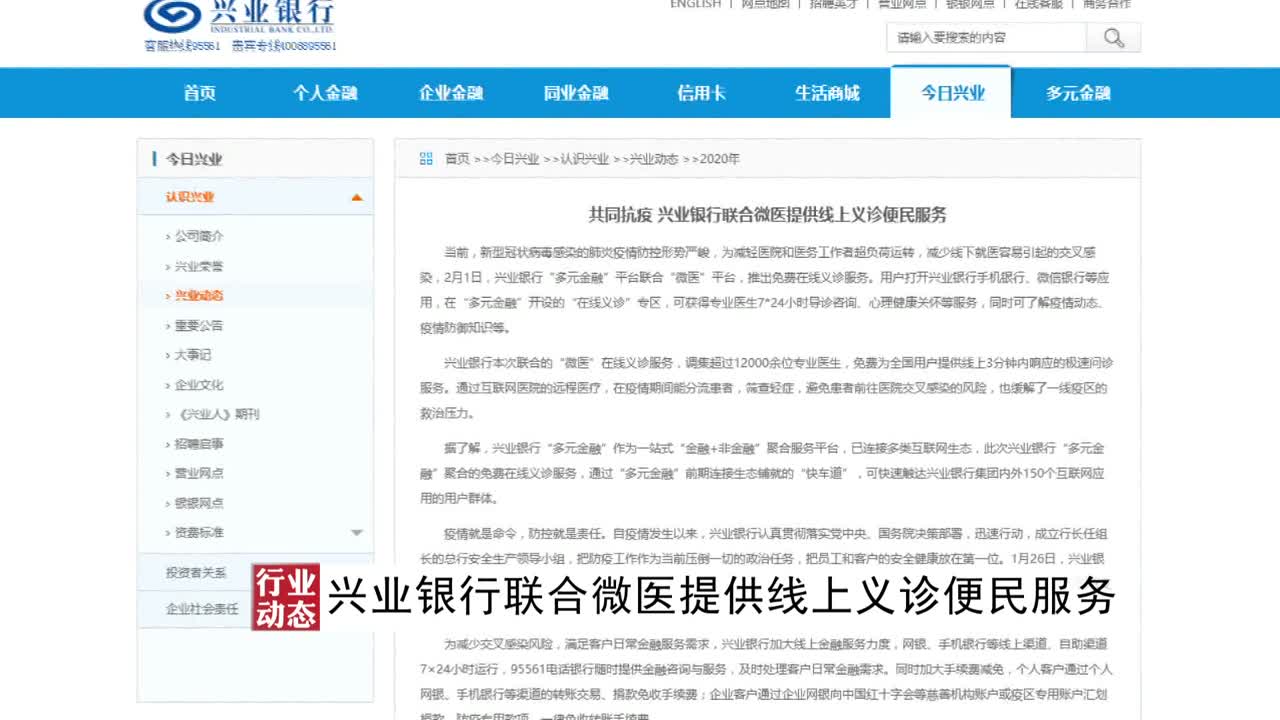 【行业动态】兴业银行联合微医提供线上义诊便民服务