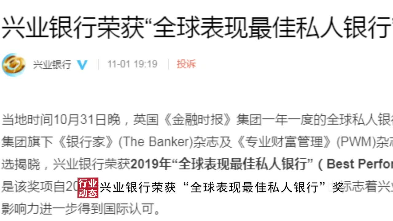 【行业动态】兴业银行荣获“全球表现最佳私人银行”