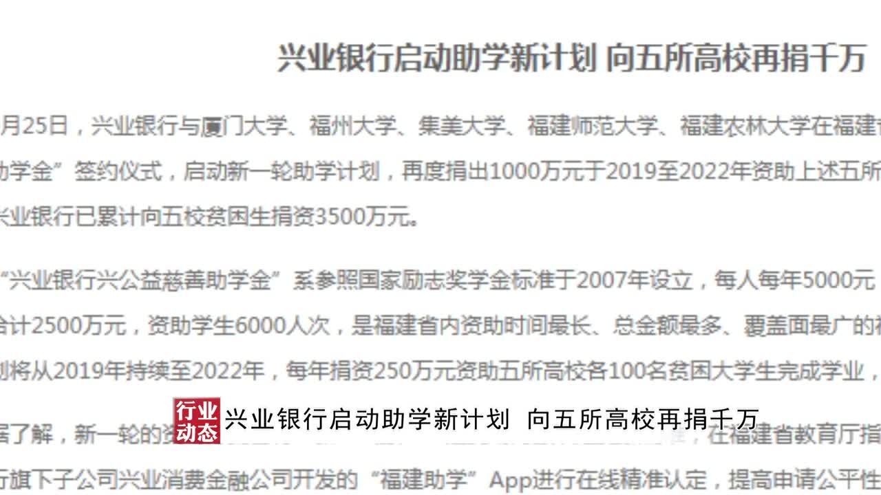 【行业动态】兴业银行启动助学新计划 向五所高校再捐千万