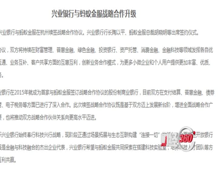 【行业动态】兴业银行与蚂蚁金服战略合作升级