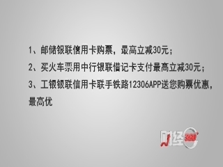 资讯:多家银行买火车票都有优惠啦 最高立减30元